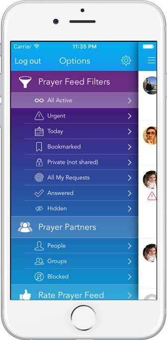 View only specific prayer requests in your feed using quick filters in the side-bar menu.